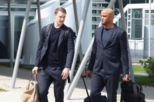 12点45分第一位从贵宾通道出来的拜仁球员是右后卫莱默尔,他神情严峻。4分钟之后,因受伤无法出战的诺伊尔是最后出来的球员,他与主帅孔帕尼并肩走向球队大巴,两人边走边专注地交谈。